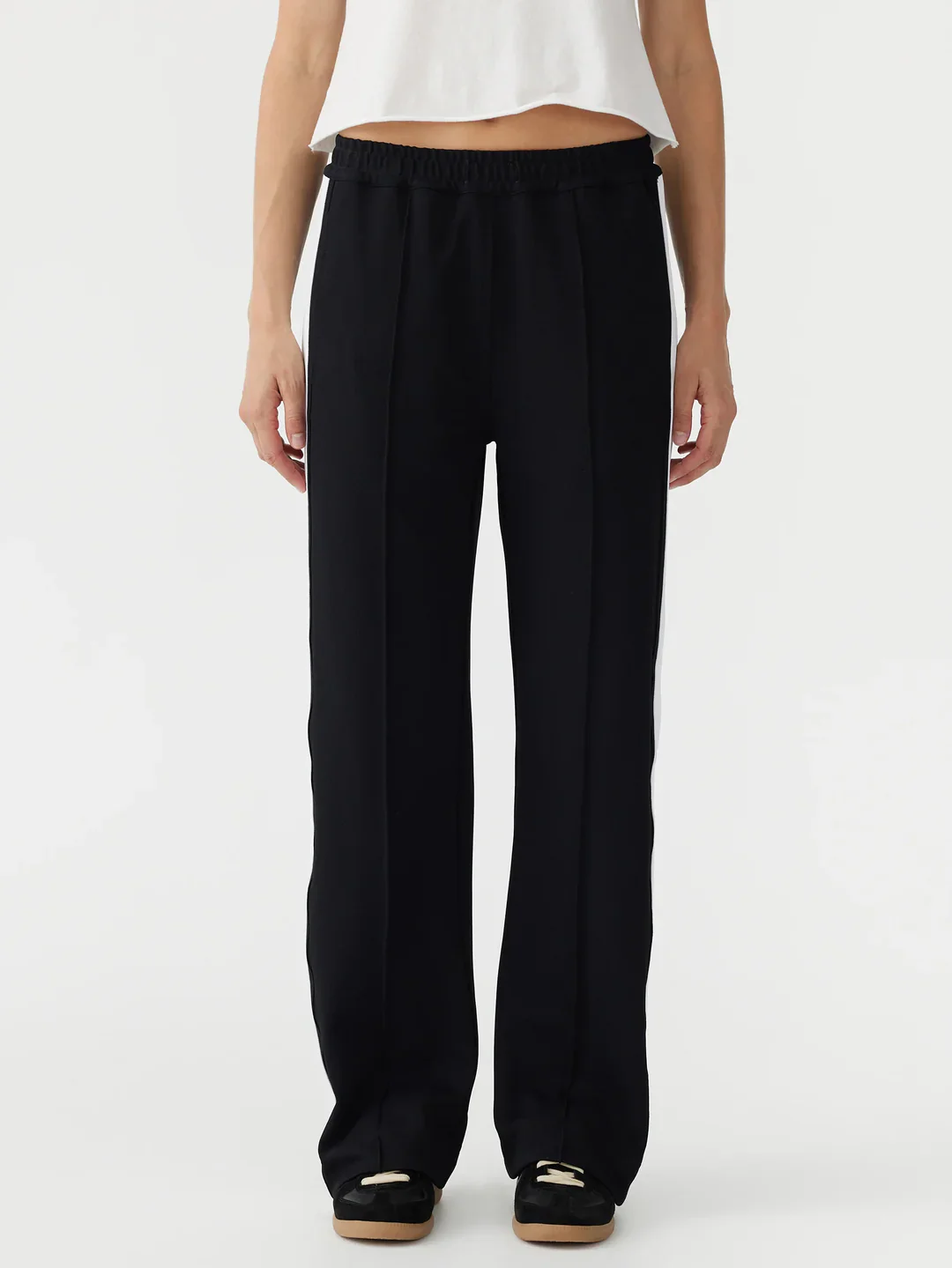 Bassike Twill Stripe Detail Pant | Black/White